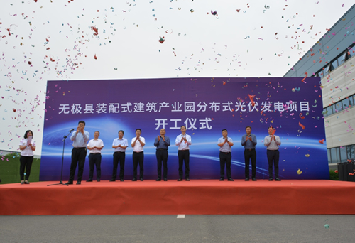 | 5月19日上午,由市政建設(shè)總公司所屬能源投資發(fā)展有限公司投資建設(shè)的無(wú)極縣裝配式建筑產(chǎn)業(yè)園分布式光伏發(fā)電項(xiàng)目開工建設(shè)。市國(guó)資委黨委委員、副主任楊劍,城發(fā)投集團(tuán)黨委委員、副總經(jīng)理李宗志,市政建設(shè)總公司總經(jīng)理馬瑞山,市住建集團(tuán)董事長(zhǎng)張瑞彬等領(lǐng)導(dǎo)及施工單位、監(jiān)理單位代表出席開工儀式。李宗志同志宣布項(xiàng)目開工。